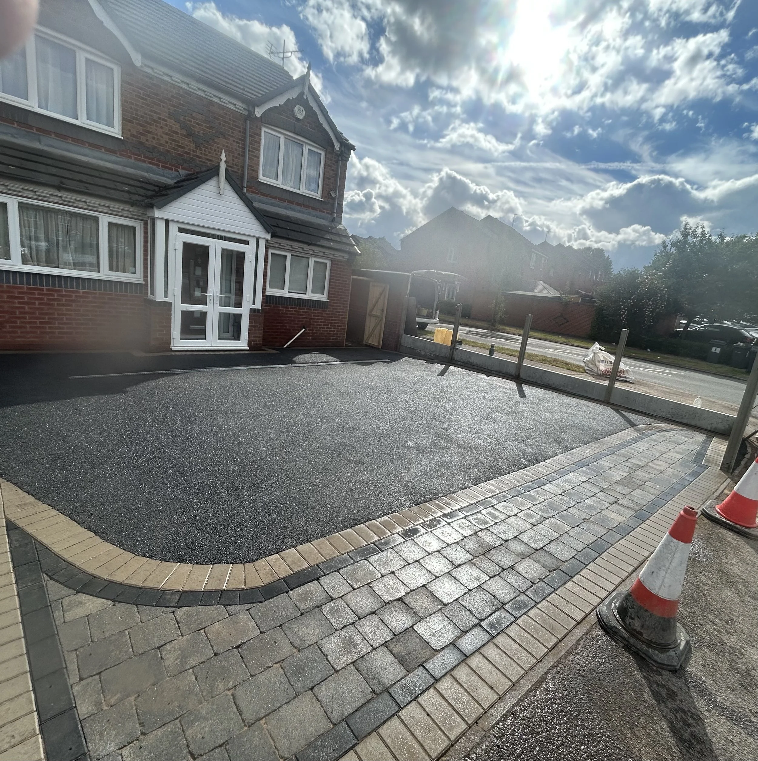 Like our example here featuring a high spec SMA tarmac drive with a block boarder and a cobble effect entrance strip with K L kerbs demarcation. If this is something you’re after do not hesitate to get in touch to discuss further.
